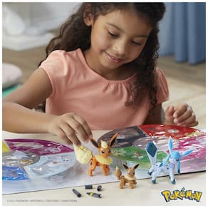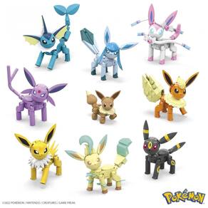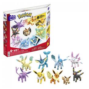 O conjunto MEGA Pokémon Every Eevee Evolution é um kit de blocos de montar com 470 peças que permite construir nove figuras articuladas de Eevee e suas evoluções. O pacote inclui Eevee, Vaporeon, Jolteon, Flareon, Espeon, Umbreon, Leafeon, Glaceon e Sylveon, todos em versão montável para exposição ou brincadeira.