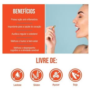 Validade longa: mínimo de 1 ano e 6 meses Produto selado com lacre de segurança Estudos observaram que os esquimós que viviam na groenlândia apresentavam índice muito baixo de doenças que são comuns em países ocidentais, doenças do coração, diabetes, asma entre outras, e perceberam que os esquimós consumiam uma grande quantidade de peixes, esse consumo foi associado a uma quantidade de ácidos graxos poliinsaturados como o ômega 3 . Os lipídios, principalmente ácidos graxos, são encontrados em diversas formas de vida e são muito importantes para nossas membranas celulares, e para várias funções do organismo. O ômega 3 é uma família de diferentes tipos de ácidos graxos que são considerados essenciais, ou seja, nosso corpo não é capaz de produzir sozinho. A família do ômega 3 contempla 3 ácidos graxos. Oácido eicosapentaenóico tem uma ação anti inflamatória, importante para saúde do coração e circulação, diminuindo a chance de coágulos e diminuindo a chance de trombose, avc e outras doenças de caráter inflamatório. O ácido docosaexaenoico, é importante para a saúde do nosso cérebro, e para o desenvolvimento fetal, da retina dos olhos, ajuda na memória, cognição, raciocínio, imaginação, e vários fatores relacionados à saúde da mente.