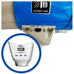Megafone SK 66 da CSR com microfone de mão, Botão com som musical e Cone com proteção de borracha na borda.Ficha Técnica:- Cone com proteção de borracha na borda;- Controle de volume;- Microfone de mão com controle de volume;- Botão Liga/Desliga;- Botão com som musical;- Som de alerta Sirene ;- Entrada USB;- Alcance máximo: 600mts;- Potência: 25W;- Utiliza 8 pilhas, não inclusas;- Dimensões D x C : 230,00 x 340,00mm;- Peso: 1,3kg.Obs.: As informações e fotos deste produto são fornecidas pelo fabricante, sendo inteiramente de sua responsabilidade. As imagens são meramente ilustrativas.Fabricante: CSR