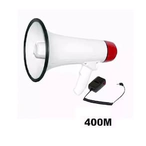 Descrição:Megafone 25w * Megafone poderoso com gravador de mensagens. * Som nítido e forte * Microfone de mão com cabo extensível * Você pode usar infinitamente este megafone com gravador de mensagens e microfone, desde escolas até demonstrações ou reuniões internas ou externas, sem afetar sua enorme potência e cobertura. * Potência: 25 W * Diâmetro: 19,5 cm * Comprimento: 34 cm * Fonte de alimentação: bateria recarregável (não incluída)) ou 6 X Bateria “D” * Distância efetiva: 400M * Alerta de sirene * Controle de volume.