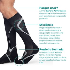 meia compressiva esportiva, Sigvaris Performance, meia para treinos 20-30mmHg, compressão graduada esportiva, meia para recuperação muscular, meia de alta performance, meia esportiva com solado macio, prevenção de lesões esportivas, meia para corrida.