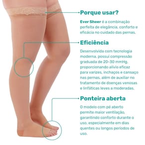 A Meia Coxa 7/8 Sigvaris Ever Sheer 20-30mmHg combina compressão graduada de alto desempenho com um design sofisticado. Desenvolvida para mulheres que buscam prevenir e tratar problemas venosos sem abrir mão de estilo, ela é ideal para o uso diário, com cor Cappuccino que se adapta perfeitamente ao seu visual.