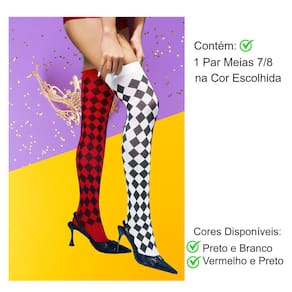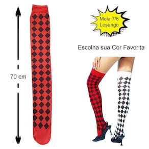 Meia 7/8 Rainha de Copas Losango Quadriculado Xadrez - Festa Fantasia Cosplay Carnaval.