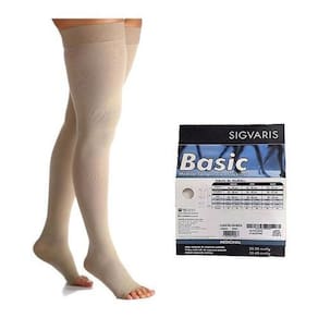 especificações técnicas: - marca: sigvaris - linha: basic - modelo: 7/8 meia-coxa - compressão: 30-40mmhg - tamanho: m3 - cor: bege - comprimento: normal ou longo ver tabela de medidas - ponteira: aberta - calcanhar: anatômico e reforçado - indicação de uso: varizes severas durante a gravidez, varizes com edema, após flebotrombose superficial, insuficiência venosa crônica, após escleroterapia ou flebectomia de grandes veias. Perguntas frequentes: - qual a compressão dessa meia? a meia 7/8 sigvaris basic possui uma compressão de 30-40mmhg, indicada para casos mais severos de varizes e outros problemas circulatórios. - essa meia pode ser utilizado por gestantes? sim, essa meia é indicada para gestantes que sofrem com varizes durante a gravidez. Ela ajuda a aliviar os sintomas e melhorar a circulação sanguínea. - posso usar essa meia no dia a dia? sim, a meia 7/8 sigvaris basic é ideal para uso diário. Ela proporciona conforto e eficiência no tratamento de varizes e pernas cansadas. - qual o tamanho dessa meia? essa meia é no tamanho m3, mas é importante consultar a tabela de medidas para escolher o tamanho correto de acordo com a circunferência da perna. - como devo cuidar dessa meia? a meia 7/8 sigvaris basic deve ser lavada manualmente, com temperatura máxima de 40°c. Não deve ser utilizado alvejante à base de cloro e a secagem deve ser feita na vertical, sem torcer.