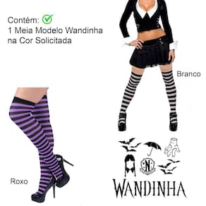 Meia 7/8 Wandinha Listrada Branco e Preto: Festa Fantasia Cosplay Dança Carnaval.