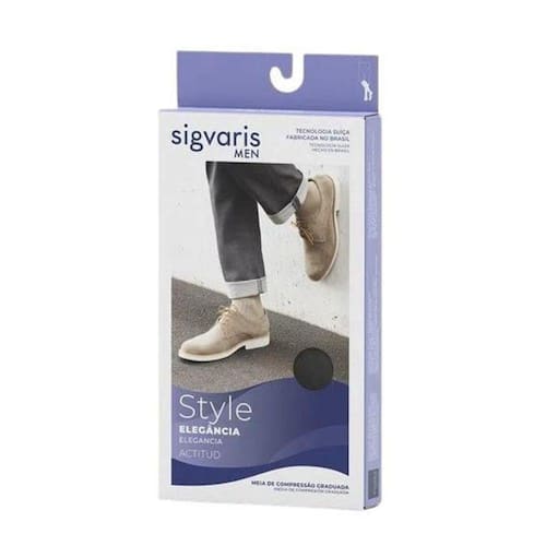 Meia Panturrilha Compressão 15-20 Mmhg Actitud - Tamanho GÉ uma Meia Panturrilha de média compressão masculina. Seu design moderno e social, é canelado e elegante. É ideal para o uso diário para dores, inchaços, sensação de peso nas pernas e prevenção de varizes. Características : - Design Moderno e Social - Canelado - Calcanhar anatômico - Com bacteriostático Indicações - Longos períodos em pé ou sentado - Varizes, Viagens de Longa distância - Pernas Cansadas - TVP - Trombose Venosa Profunda Meia de Compressão Como saber o meu tamanho ideal Com o auxílio de uma fita métrica, faça a medição da circunferência do tornozelo, panturrilha (aconselhamos a anotar), no anuncio tem uma foto com as circunferências e tamanhos correspondentes, compare com os valores da sua anotação e veja qual melhor se encaixa nas suas medidas.