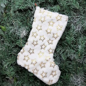 Meia Bota Pelúcida Pendente Enfeite Natalino Estrelas 32cm Dourado -