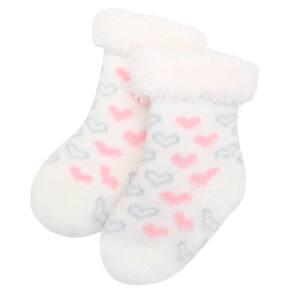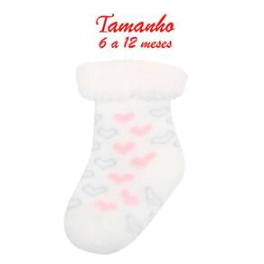 Meia Branca Coração Peluciada Infantil Antiderrapante 6 a 12 Meses -