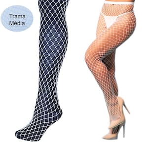 Meia Calça Arrastão Branca. Tamanho único: Veste do 40 ao 46/48, pois possui bastante elasticidade, se moldando ao corpo. Cor: Branca. Tramas: Pequena ou Média. Escolha a sua favorita no campo variação. Produto indispensável no guarda-roupa feminino para compor vários looks. Tamanho aproximado das tramas ao retirar da embalagem: Pequena: 1,00 x 0,50 cm. Média: 2,00 x 1,00 cm. Composição: 85% Poliéster, 15% Spandex. As tramas se ajustam ao corpo, aumentando ao se esticarem. Atenção: Produto de alta rotatividade. Recebemos novas remessas semanalmente e algum detalhe pode variar conforme o lote recebido, porém o produto é o mesmo e mantém as mesmas características e qualidade. Contém: 1 unidade na cor branca na trama selecionada. Fotos ilustrativas e reais do produto.