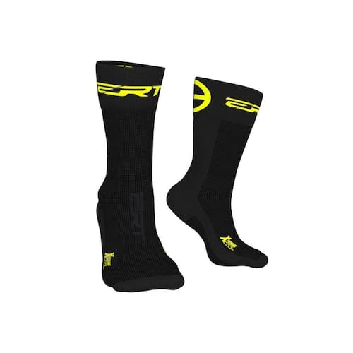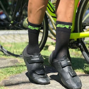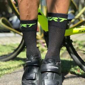 Meia Ciclismo ERT Preto e Verde Cano Médio Cor: Preto e Verde Tamanho: 38-42 A indústria de roupas esportivas, principalmente de ciclismo, tem investido bastante em tecnologias visando à performance e conforto dos atletas. As meias de ciclismo possuem design sem costuras e com alta contagem de linhas, isso resulta em Menos pontos . Uma meia desenhada e produzida para o uso durante o ciclismo é feita com um tecido diferente, capaz de absorver melhor o suor e de favorecer a transpiração, evitando que seu pé fique úmido durante longas horas - o que pode causar fungos e outros problemas. A meia ERT de cano médio é feita de fio de poliamida, material resistente, leve e muito confortável. Possui telas de respiro na sola e parte superior dos pés, facilitando a troca térmica e evitando que o pé fique muito úmido. Possui tratamento bactericida com íons de prata, que afasta as bactérias, evitando odores indesejáveis. As meias da ERT possuem cores lindas e atraentes para compor o look, e além de deixar o pedal bem confortável, o deixa super alegre Características: Marca: ERT Uniformes Modelo: Cano médio Composição: 93% poliamida / 05% elastano / 02% elastodieno Fabricado: Brasil