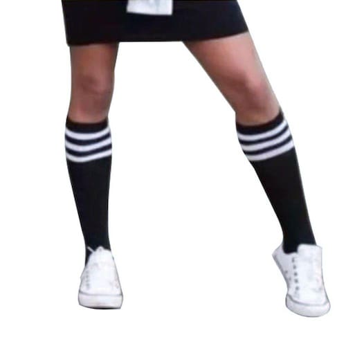 Modelo Meião feminino.Tamanho único que atende numeração 38 a 46, pois possui bastante elasticidade se moldando aos pés.Verifique abaixo o tamanho do produto:Tamanho aproximado: 50 cm comprimento - 20 cm calcanhar - 30 cm cano.Componha diversos looks com saias, shorts, vestidos, etc. Vai bem com qualquer tipo de calçado, proporcionando um visual moderno e descontraído.Ideal para esportes e academia.Composição: 55% poliéster, 40% algodão, 5% elastano.Cores disponíveis: verde, vermelho, azul, branco e preto.A quantidade de listras entre 2, 3 e 4 listras dependendo da remessa recebida. Enviaremos conforme disponibilidade de estoque.Atenção: Produto de alta rotatividade. Recebemos novas remessas semanalmente e algum detalhe como quantidade de listras pode não ser como o da foto, porém o produto é o mesmo e mantém as mesmas características e qualidade.Contém: 1 par meias na cor selecionada.