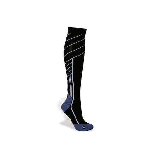 Meia Alta compressa~o para ciclismo e corredores que desejam melhorar a sua performance. A compressa~o da meia ajuda a regenerac¸a~o muscular e possui paine´is de ventilac¸a~o para a pele. Design anato^mico ajustando a meia ao pe´. Na~o possui costura na ponta, evitando o atrito e feridas.