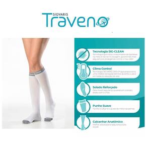 A meia SIGVARIS TRAVENO é a companhia perfeita para viagens com mais de 2 horas de duração, proporcionando conforto e proteção durante todo o trajeto. Desenvolvida para evitar inchaços e melhorar a circulação venosa, é ideal para quem busca bem-estar em qualquer tipo de deslocamento. Destaques do Produto: Design Anatômico: Ajuste perfeito para maior conforto. Calcanhar Verdadeiro: Proporciona estabilidade e adaptação ideal ao pé. Adaptação Climática: Mantém a temperatura ideal para seus pés. Punho Suave: Fixa sem apertar, garantindo conforto prolongado. Solado Reforçado: Maior durabilidade e resistência. Proteção Antimicrobial: Mantém a higiene e previne odores. Viaje com mais conforto, segurança e bem-estar com a meia SIGVARIS TRAVENO