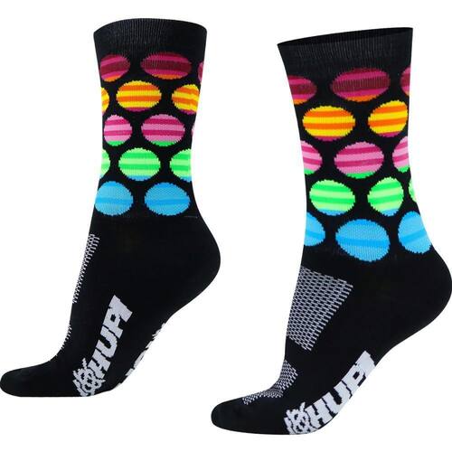 Contando com grafismo simples, a Meia Hupi Polka favorece a combinação com outras peças de vestuário para pedalar, garantindo estilo único ao andar de bicicleta em qualquer lugar e modalidade. Com áreas diferenciadas nas pontas dos pés e calcanhar, a durabilidade contra atritos dentro das sapatilhas de ciclismo e/ou tênis é muito maior, favorecendo ainda mais a qualidade dos seus pedais.