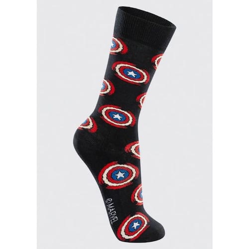 Com um design moderno inspirado no Capitão América, essa meia traz detalhes que remetem ao escudo e às cores tradicionais do personagem, deixando seu visual mais estiloso e cheio de atitude.