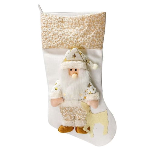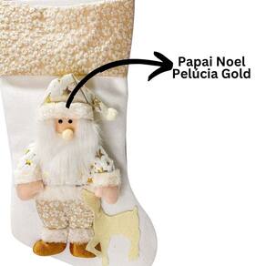 Meia Natal Decorada Papai Noel Pelúcia Luxo Star Gold 50cm – Branco e Dourado