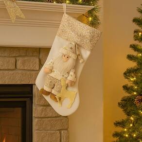 Transforme sua decoração natalina com charme e sofisticação com a Meia Decorativa Papai Noel Star Gold. Com 50cm de altura, este modelo combina o clássico espírito natalino com um toque luxuoso em branco e dourado.