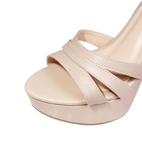 Linha de Meia Pata Salto Alto Fino Luiza Sobreira, produzida em material sintético na cor Amêndoa, com palmilha e forro em P.U., solado em TR.