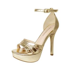 Linha de Meia Pata Salto Alto Fino Luiza Sobreira, produzida em material sintético na cor Dourado, com palmilha e forro em P.U., solado em TR.
