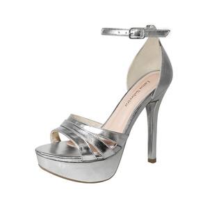 Linha de Meia Pata Salto Alto Fino Luiza Sobreira, produzida em material sintético na cor Prata, com palmilha e forro em P.U., solado em TR.