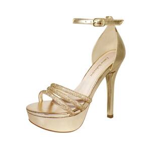 Linha de Meia Pata Salto Alto Fino Luiza Sobreira, produzida em material sintético na cor Dourado com detalhes em strass, com palmilha e forro em P.U., solado em TR.