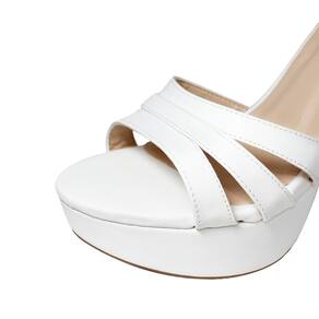 Linha de Meia Pata Salto Alto Fino Luiza Sobreira, produzida em material sintético na cor Branca, com palmilha e forro em P.U., solado em TR.