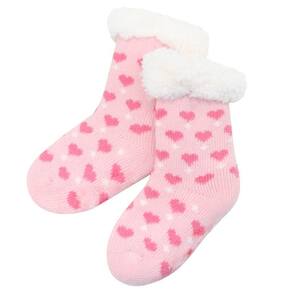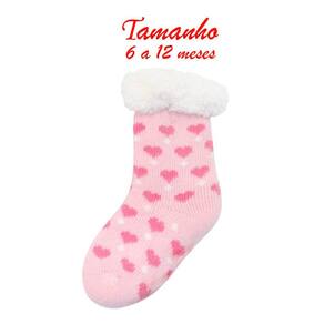 Meia Rosa Coração Peluciada Infantil Antiderrapante 6 a 12 Meses -