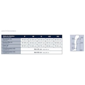 A meia possui a compressão ideal, diminuindo a estase sanguínea e melhorando o retorno venoso. Totalmente adequada para pacientes submetidos a qualquer tipo de procedimento cirúrgico acima de duas horas pois estimula o fluxo sanguíneo nas veias das pernas, impedindo a formação de coágulos sanguíneos, que podem causar trombose venosa ou embolia pulmonar. Por isso é tão importante a utilização das meias elásticas de compressão durante e após os procedimentos cirúrgicos, de acordo com a orientação médica.