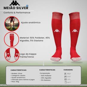 CARACTERISTICAS: - Marca: Kappa - Modelo: Silver - Categoria: Juvenil - Ajuste anatômico - Indicado para treinos e jogos - Material: 50% Poliéster, 45% Algodão, 5% Elastano - Peso: 90g