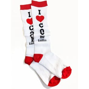 - Divirta-se um pouco ao calçar as meias de festa até o joelho da Leg Avenue. As peculiares joelheiras atléticas apresentam um design colorido, letras ousadas e tecido de malha canelada.