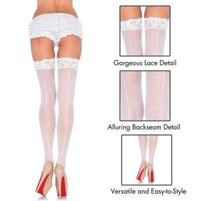 Meias femininas de renda transparente Leg Avenue com costura traseira, brancas