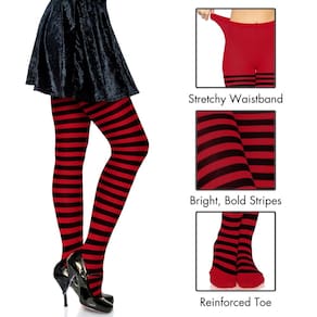 Eles vai ser vejam listras quando você caminha na cena. Estes Plus Size preto/branco listrada meia-calça fará visual suas pernas longas e lean. Par com uma Harley Quinn fantasia ou um bruxo ou sexy preso fantasia. – Plus Size preto/branco listrada meia-calça