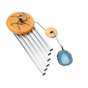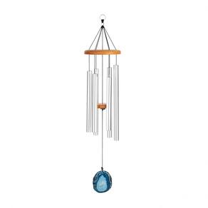 Som claro e alegre Ressonância duradoura Ideal para meditação, relaxamento, terapias ou decoração 6 barras de alumínio prateadas Pedra de ágata azul na extremidade inferior Topo redondo de madeira Pêndulo com altura ajustável Anel de suspensão Afinação: F6, G6, A6, C7, D7, F7 (base A4/a' 432 Hz) Dimensões: 73 cm de altura × 15 cm de profundidade