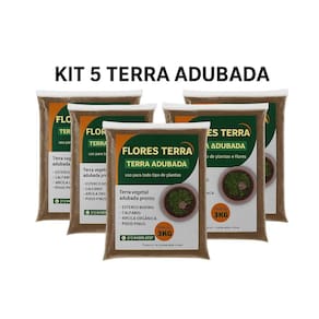 Melhor Kit 5 Terra Vegetal Adubada 3kg - Hortas e Jardins O Kit 5 Terra Adubada Flores Terra 3kg foi desenvolvido para atender a todas as necessidades de quem cultiva plantas, flores, hortaliças ou jardins. Cada saco contém 3kg de terra vegetal adubada, pronta para uso, oferecendo um solo fértil, equilibrado e enriquecido com nutrientes essenciais para garantir plantas mais saudáveis e com desenvolvimento vigoroso. Sua fórmula é composta por esterco bovino, calcário, argila orgânica, pó de pinus e terra vegetal, ingredientes naturais que juntos proporcionam um substrato de alta qualidade. O resultado é uma terra leve, solta e com excelente capacidade de retenção de umidade, permitindo que as raízes respirem e absorvam os nutrientes de forma eficiente. Principais Benefícios: