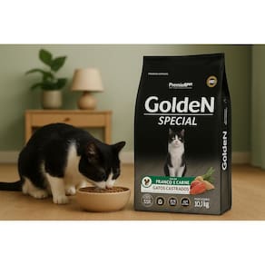 A Golden Special também contribui para a saúde intestinal, proporcionando fezes com melhor consistência e menor odor, e auxilia na saúde da pele e dos pelos, deixando-os mais bonitos e brilhantes.