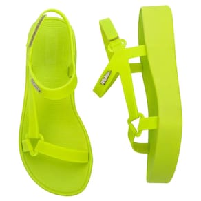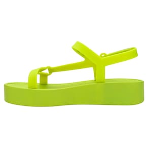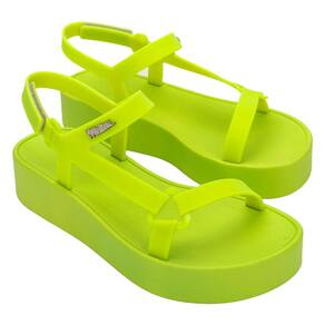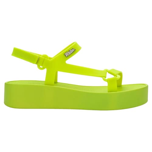 Melissa Sun Downtown Platform 35710 com acabamento vulcanizado e fechamento por fita duplamente aderente. Feita em PVC Melflex, possui solado de 4 cm e palmilha de EVA. Melflex é 100% reciclável, oferecendo flexibilidade, resistência e conforto superiores.