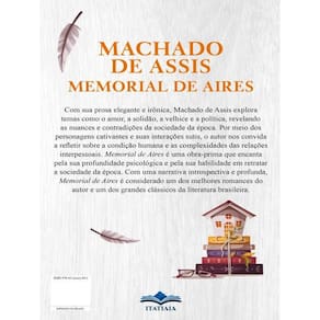 Com sua prosa elegante e irônica, Machado de Assis explora temas como o amor, a solidão, a velhice e a política, revelando as nuances e contradições da sociedade da época. Por meio dos personagens cativantes e suas interações sutis, o autor nos convida a refletir sobre a condição humana e as complexidades das relações interpessoais. “Memorial de Aires” é uma obra-prima que encanta pela sua profundidade psicológica e pela sua habilidade em retratar a sociedade da época. Com uma narrativa introspectiva e profunda, "Memorial de Aires" é considerado um dos melhores romances do autor e um dos grandes clássicos da literatura brasileira.