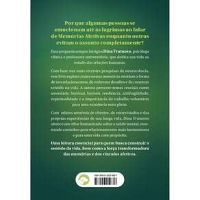 Por que algumas pessoas se emocionam até às lagrimas ao falar de Memórias Afetivas enquanto outras evitam o assunto completamente? Essa pergunta sempre intrigou Dina Frutuoso, psicóloga clínica e professora universitária que dedica sua vida ao estudo das relações humanas. Com base nas mais recentes pesquisas da neurociência, este livro explora como nossas memórias moldam a forma de nos relacionarmos, de enfrentar desafios e de construir sentido na vida. A autora percorre temas cruciais como ansiedade, burnout, burnon, resiliência, antifragilidade, espiritualidade e a importância do trabalho voluntário para uma existência mais plena. Com relatos sensíveis de clientes, entrevistados e das próprias experiências de sua longa vida, Dina Frutuoso oferece um olhar humanizado sobre a saúde mental, mostrando caminhos para relacionamentos mais harmoniosos e para uma vida com propósito. Uma leitura essencial para quem busca construir o sentido da vida, bem como a força transformadora das memórias e dos vínculos afetivos.