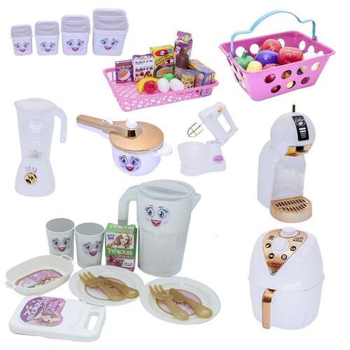 Menina brinquedo kit cozinha mercado comida air fryer 46pç Produto em estoque O kit vem com jogo de jantar, mercadinhos, liquidificador, air fryer, potinhos para mantimentos, batedeira, panelinha de pressão e cafeteira -----------------------------------------------------------------------------------------------1 jarra, - 2 copos - 1 tabua de carne - 1 travessa - 2 pratos - 1 caixa de suco de maçã - 2 garfos - 2 facas--------------------------------------------------------------------------------------------- - 1 caixinha de suco de uva, - 1 caixinha de leite integral, - 1 caixinha de cereal, - 1 caixinha de macarrão instantâneo, - 1 caixinha de cookies de chocolate, - 2 ovos - 2 pimentões - 1 banana. - 1 lata de milho - 1 lata de achocolatado - material: plástico e papelão - 1 cestinhaDimensões aproximadas em cm: 23 de comprimento, 15 de largura ---------------------------------------------------------------------------------------------- 1 cestinha de mercado tamanho 19 cm de comprimento x 15 cm de largura - 6 unidades de legumes e 6 unidades de frutas---------------------------------------------------------------------------------------------- 1 air fryer de aproximadamente 13cm de altura x 9 cm de largura com gaveta removível---------------------------------------------------------------------------------------------- 1 liquidificador de aproximadamente 17 cm de altura x 9,5 cm de largura---------------------------------------------------------------------------------------------- 1 batedeira de aproximadamente 15 cm de altura x 12 cm de largura---------------------------------------------------------------------------------------------- 1 panelinha de pressão 19 cm de comprimento, 9cm de largura, 10cm de altura--------------------------------------------------------------------------------------------- - 1 cafeteira de aproximadamente 19cm de altura x 12 cm de largura ---------------------------------------------------------------------------------------------Tamanhos dos potes de mantimentos arroz, feijão, açucar e café:- café: 4,5 cm de altura x 4,5 cm de largura- açucar: 5,5 cm de altura x 5,5 cm de largura- feijão: 6 cm de altura x 6 cm de largura- arroz: 7 cm de altura x 7 cm de largura Informações adicionais:Não recomendável para menores de 03 anos por conter partes pequenas que podem ser engolidas.Imagens fotografadas pela equipe click compras para uso exclusivo da mesma.O uso não-autorizado das imagens expostas estará sujeito a sanções previstas em lei de direitos autorais.Certificado pelos órgãos autorizados - ocps organismos de certificação de produtos Mais informações as cores, ítens e embalagem poderão variar conforme atualização do fabricante. Imagens meramente ilustrativas.Não recomendado para crianças menores de 3 anos por conter partes pequenas que podem ser engolidas ou aspiradas.Produto certificado pelo inmetro: ce-bri/innac - 00297-01a nm300/2002Clickcompras brinquedos