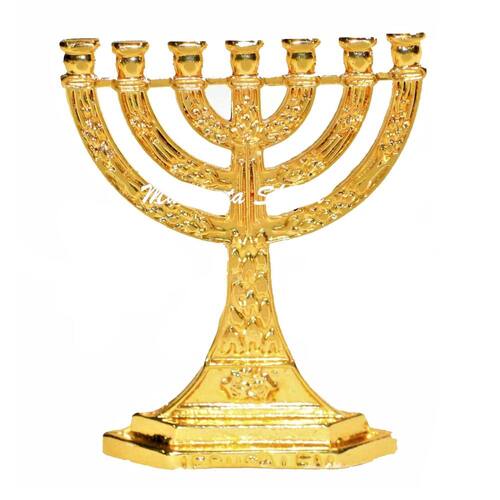 Menorah Candelabro em metal com banho dourado, ótima qualidade, resistência e acabamento.