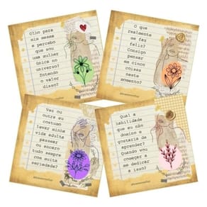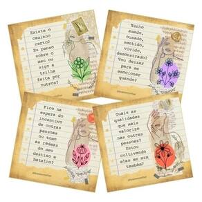 Dimensão: Caixa 6,5cm x 6,5cm papel cartão 300g que vira expositor ao ser aberta. Cartinhas 6cm x 6cm papel couché 200g. Beneficios: 100 Cartões Exclusivos: Frases selecionadas com carinho para inspirar momentos de calma e reflexão. Design Elegante: Cartões com design refinado que encantam pela beleza e simplicidade. Perfeito para Presentear: Um presente significativo para amigos, familiares ou para si mesmo. Marca: Bialluz