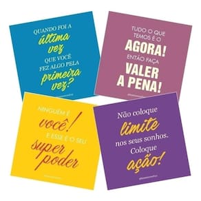 Benefícios: Aumenta a Motivação e Produtividade: Frases curtas que ajudam a manter o foco e a determinação. Promove o Bem-Estar: Mensagens positivas que elevam o humor e a autoconfiança. Facilita a Reflexão Pessoal: Incentiva momentos de introspecção e crescimento pessoal. Tire todas as suas dúvidas antes de concluir a compra. Iremos responder o mais breve possível. Ideal para o seu ambiente. Ótima resistência e durabilidade Marca: Lua Mística - 100% Original - Loja Oficial