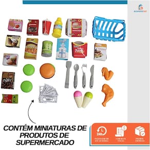 O Mini Mercadinho Infantil Importway é a brincadeira perfeita para estimular a imaginação das crianças! Ele vem com 30 peças, carrinho de compras, balança e compartimentos, deixando a experiência ainda mais realista.