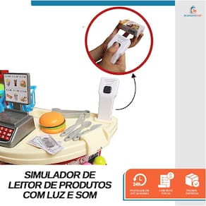 Com leitor de produtos com luz e som, a criança se sente como um verdadeiro dono de mercadinho, aprendendo de forma divertida enquanto interage com o brinquedo. Seguro e certificado pelo INMETRO, é indicado para crianças a partir de 3 anos.