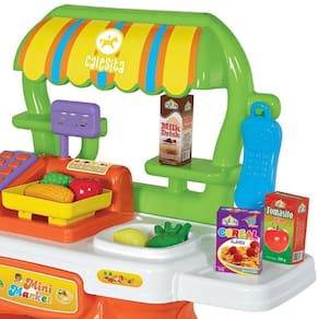 Especificações: Indicação: +3 anos Tamanho Aproximado: 62 x 28 x 58 cm Conteúdo da embalagem: 1 mini market / 1 balança / 1 cesta de compras / 1 telefone / 6 verduras e legumes / 8 caixinhas Garantia de 90 dias contra defeito de fabricação. Produto com certificação de segurança do Inmetro.