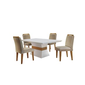 Informações Complementares: Conjunto produzido em material 100% MDF, acabamento em pintura UV, e cadeiras estofadas com espumas e tecidos de alta qualidade.