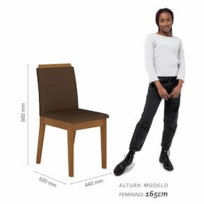 Detalhes Técnicos das Cadeiras - Almofada do Assento: Fixa -Cadeira Estofada: Sim -Estrutura: MDF 18 e 25mm -Cada cadeira suporta até 90kg -Tonalidade Cadeira: Freijó/Suede Marrom -Assento: D16 -Encosto: D14 -Medida: A:95cm x P:50cm x L:44cm