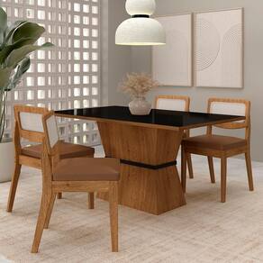 Detalhes Técnicos das Cadeiras -Assento e Encosto Tapeçados, Estofados e Fixos -Peso Suportado da Cadeira:90KG -Facilidade da Montagem:Média -Tonalidade da Cadeira:Freijó/Corino Caramelo -Espuma do Encosto:D14 -Espuma do Assento:D16 -Tipo de Pintura:UV Texturizada -Material da Estrutura:MDF 25/18mm -Medida da Cadeira:A:84CMxL:45CMxP:53CM