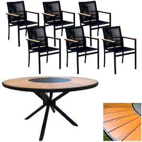 Mesa 1,50m Giratória Zurick De Madeira 6 Poltronas Amélia Corda Náutica De Jantar Preto