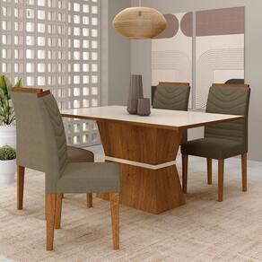 Mesa 4 Cadeiras 1,36 Odessa Freijó/off Premium/suede Capuccino - M.a - Marrom